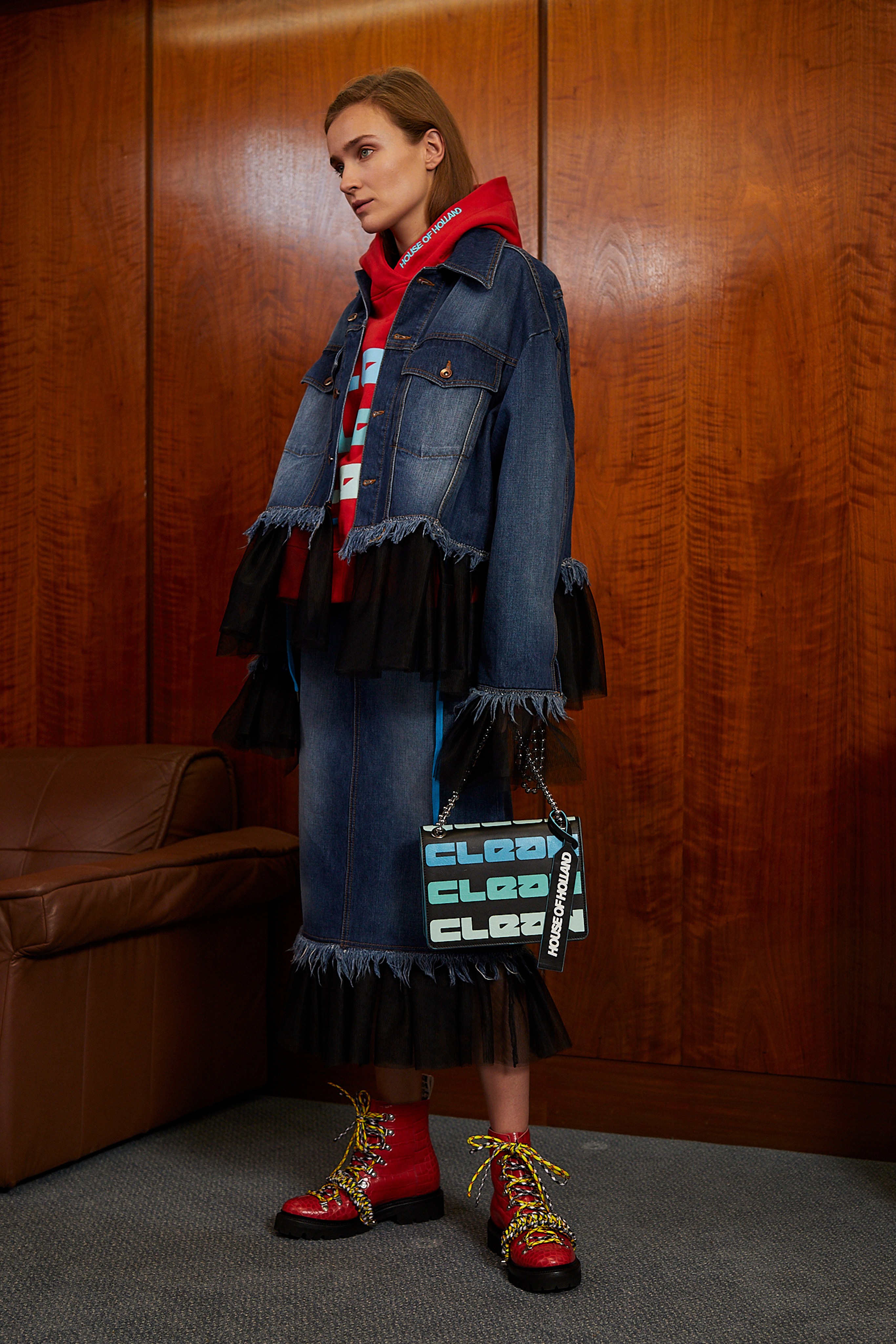 牛仔的搭配內斂呼應 House of Holland resort 2019