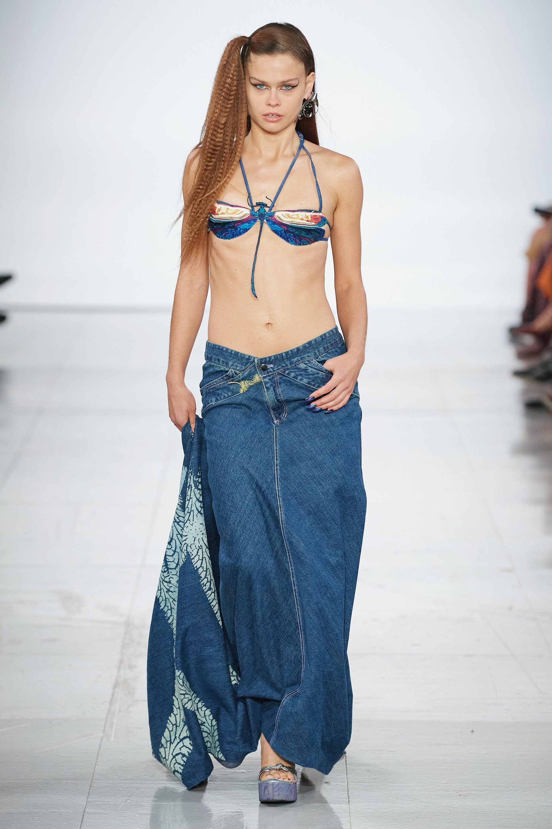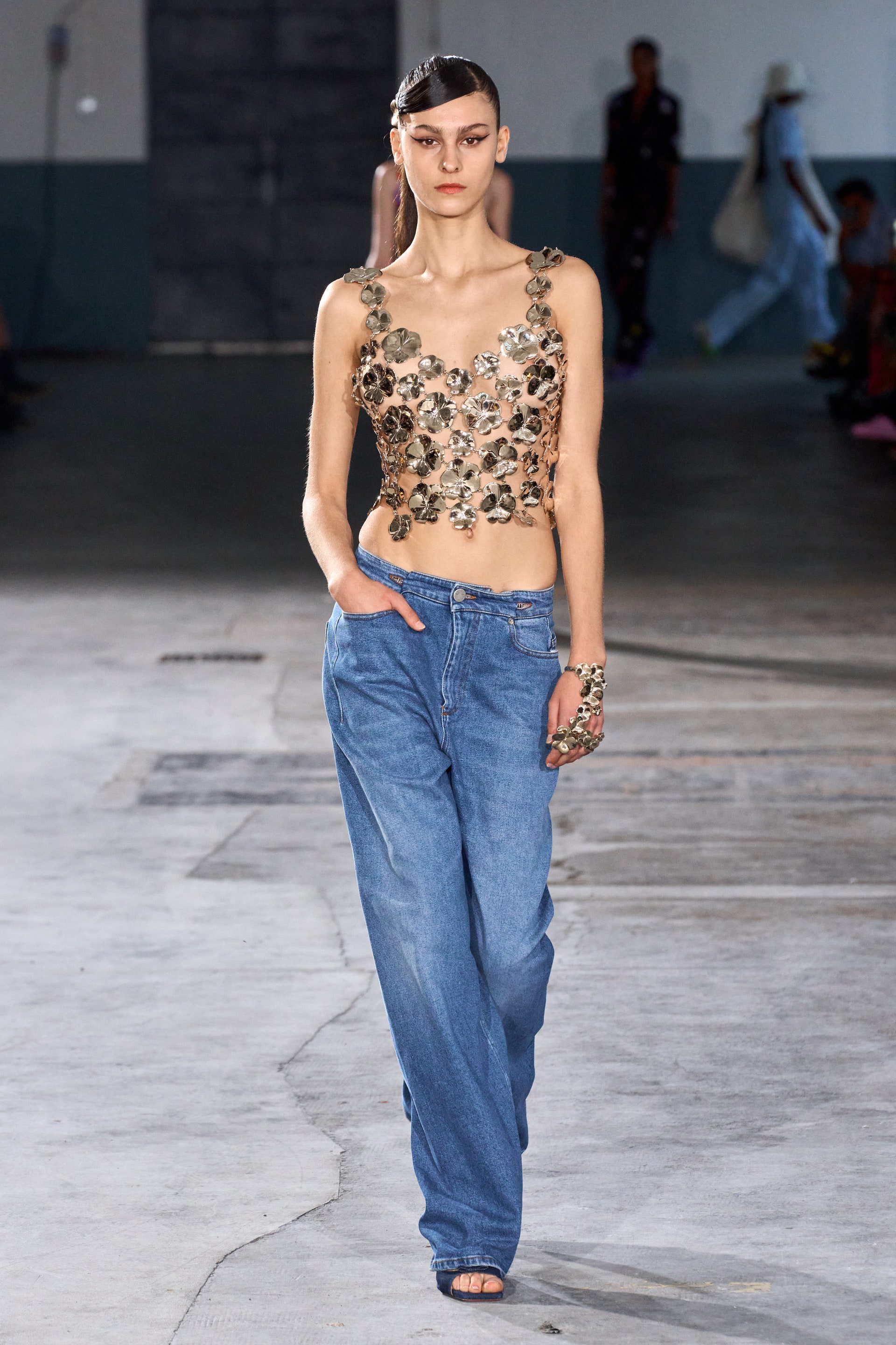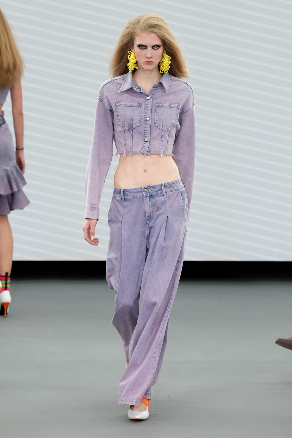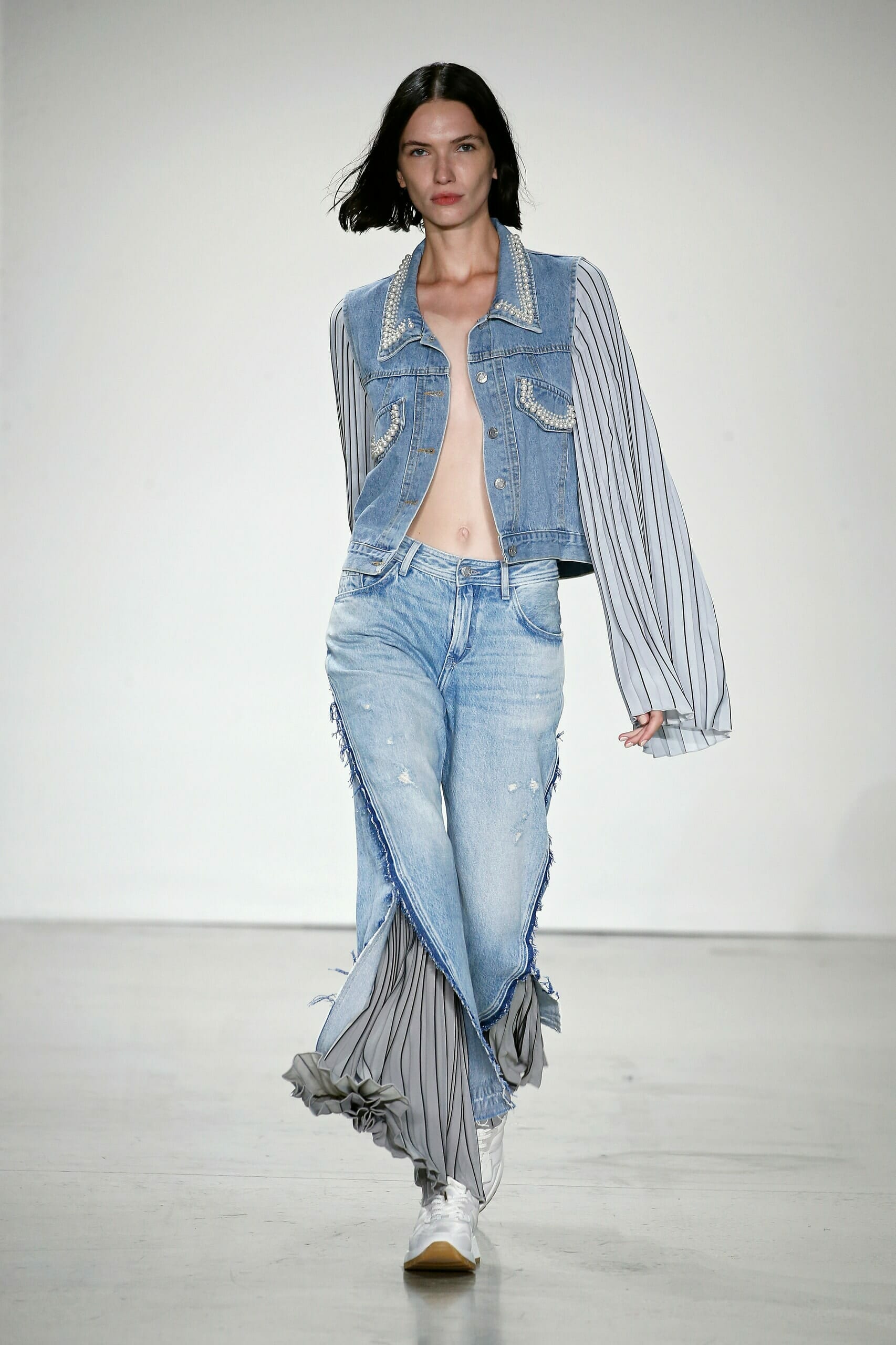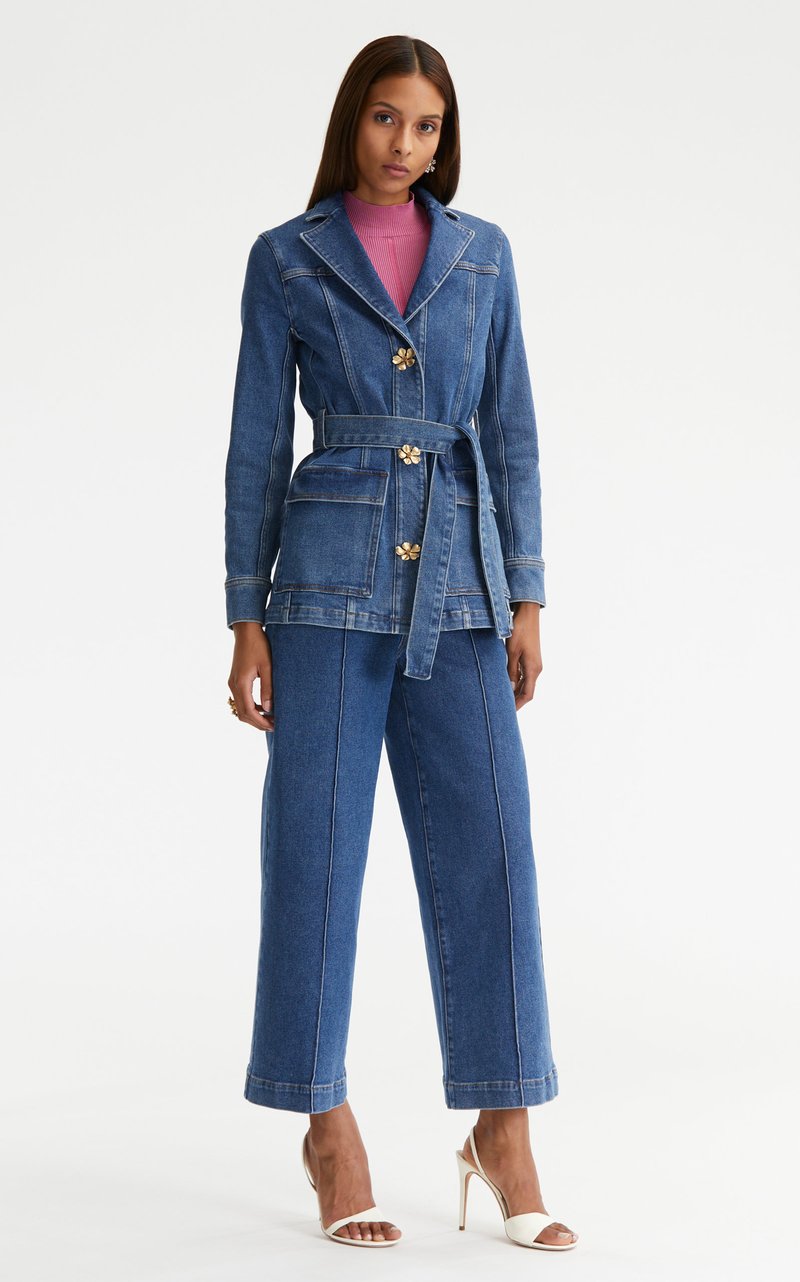 丹寧單品易於搭配穿著的特性以及散發的獨特魅力往往吸引著無數消費者的青睞,而細節工藝的運用也是提升單品吸引力的重要手法。 不同的工藝在款式上的運用呈現出完全不同的風格,面料拼接、鑽飾點綴、剪裁結構等元素使經典丹寧遠離千篇一律的枯燥感。