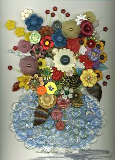 美麗的釦子做成的鈕釦拼貼畫作,讓釦子呈現出不同的生命 圖片來源>https://www.pinterest.com/moreidey/buttons/ 分享