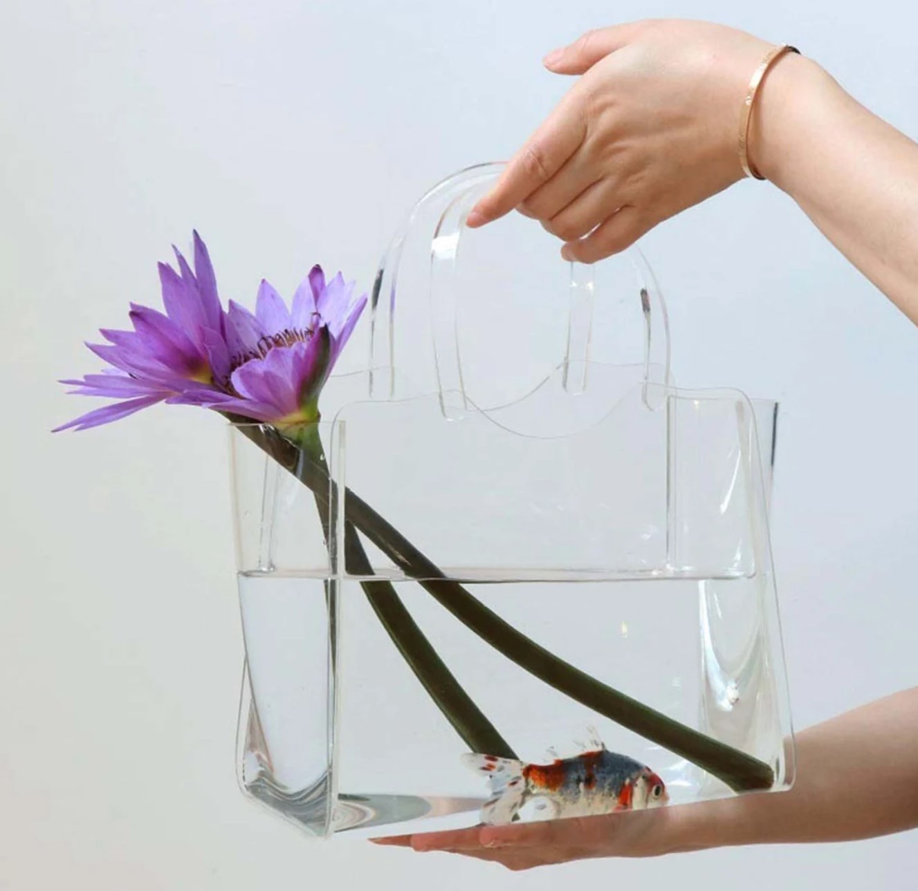 2022的 IT BAG? 迷你小廢包攻占了近年 IT BAG的地位,「完全無實用性」似乎成為達到“it”地位的先決條件。 設計師不斷地在突破配飾的界限,所以當清澈透明的「玻璃包」成為 2022 年最搶手時尚單品時,千萬不要感到驚訝。 是花瓶也是包包,可以拿來裝花、裝魚、裝化妝品,實用性有待考量,無庸置疑的是使用時千萬要小心