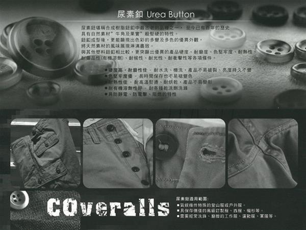 硬度高,耐磨性佳:與數脂扣相比,尿素扣的硬度更高,具熱固型塑膠特性,耐磨性佳,不易破裂,可承受洗衣機及烘乾機長時間使用,經常洗滌的工作服、軍服、休閒服、運動服、西服、襯衫等大範圍的使用。