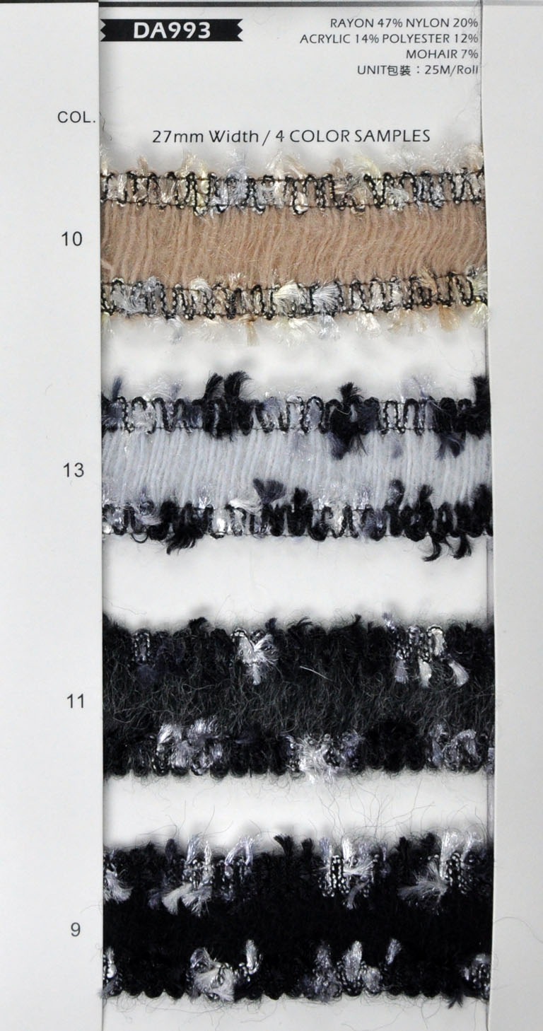 Rayon47% Nylon20% Acrylic14% Polyester12% Mohair7%
