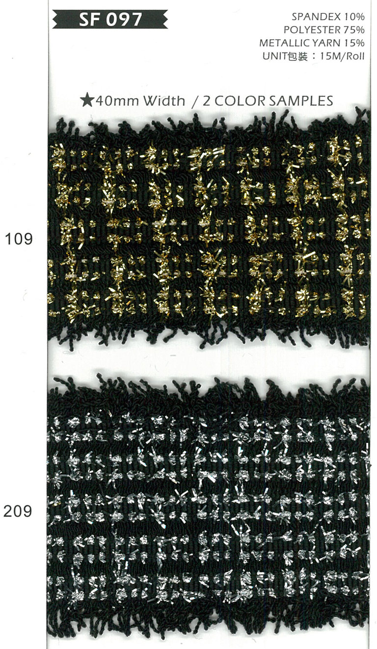 聚脂纖維/滌綸75% 金屬紗15% 彈性絲/氨綸10%