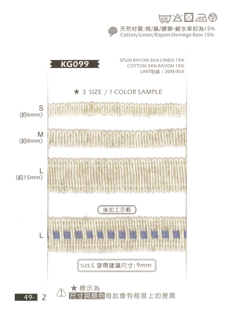 人造棉36% 亞麻紗15% 棉34% 人造絲15%