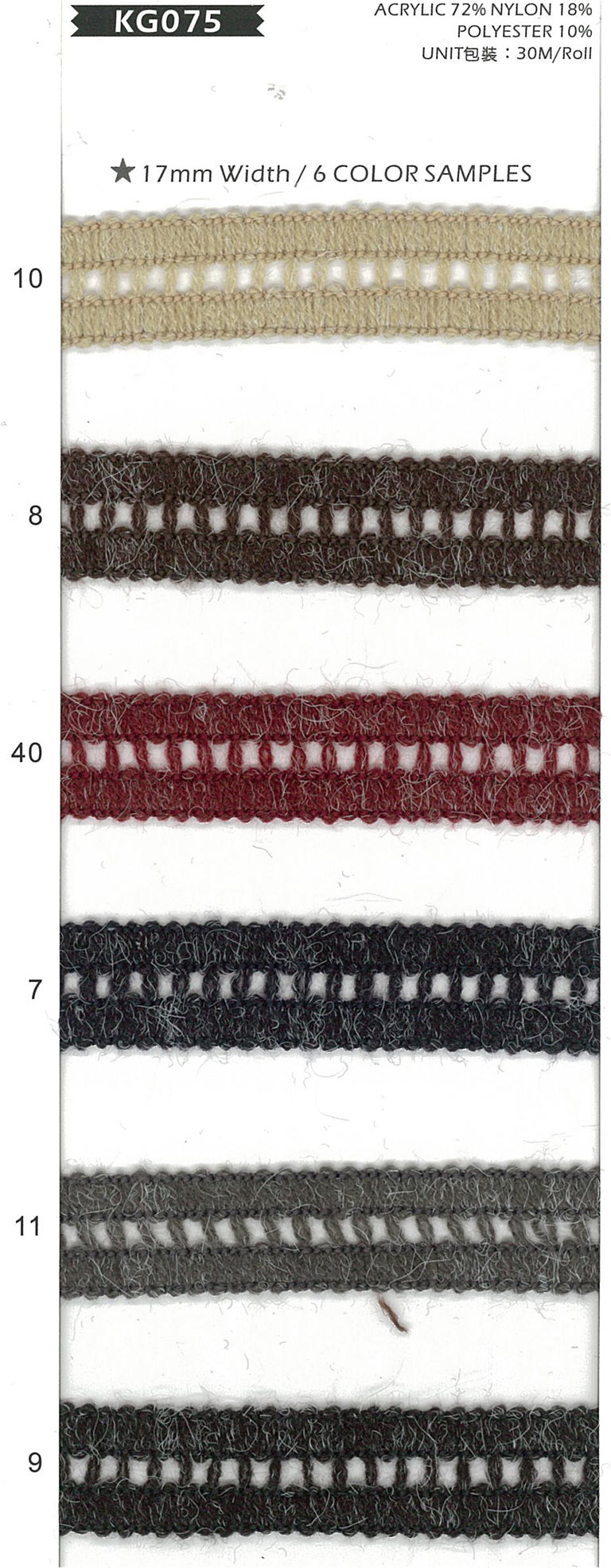壓克力/聚丙烯晴72% 尼龍/錦綸18% 聚脂纖維10%