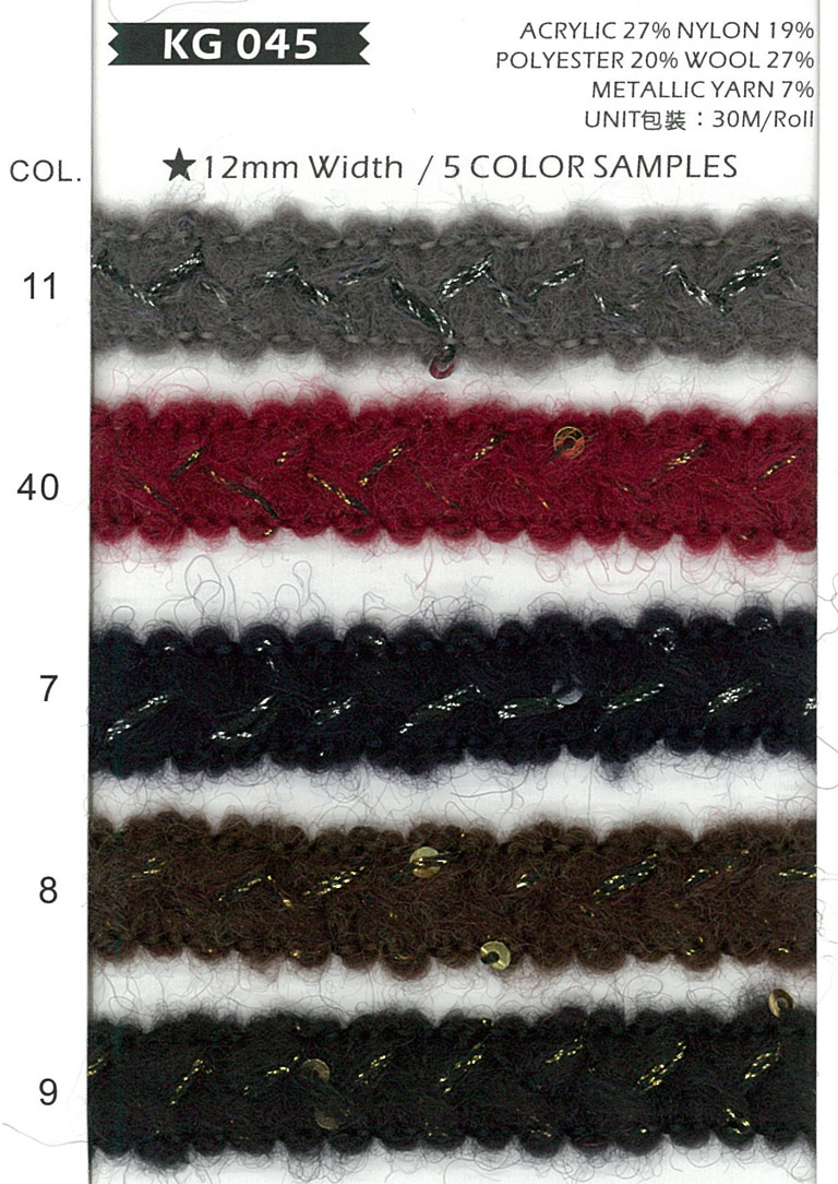 Acrylic27% Wool27% Nylon19% Polyester20% Metallic7%
